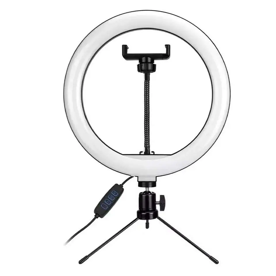 Iluminá tus contenidos como una profesional con este anillo de luz LED de 26 cm y 35 W, ideal para usar con tu smartphone. Ofrece una iluminación potente, uniforme y regulable que mejora instantáneamente la calidad de tus fotos, videos o transmisiones en vivo. Su soporte ajustable para celular permite lograr el ángulo perfecto, brindándote comodidad y resultados increíbles en cada toma.